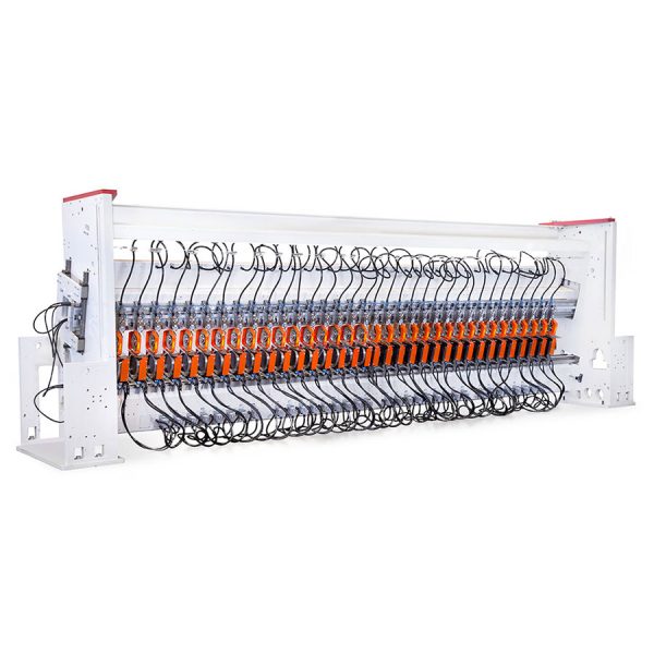 Next-generation solution for independent motor scissor cutting systems. Each cutting system consists of an upper and a lower part, both equipped with high-performance pneumatic knife holders and an independent motor. The cutting system is the best solution for high working speeds, above 1500m/min or if the machine span exceeds 5m. Positioning is simple, fast and precise thanks to linear recirculating ball sliders.